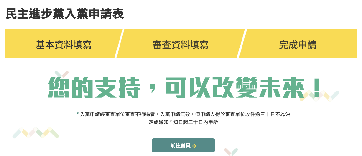 3. 本黨為了能快速且正確的為您辦理入黨事宜,須請您留下您的姓名(必須與您的身分證相符)、E-mail、聯絡電話、入黨所需相關資訊。如果您與本黨聯繫時,請您提供正確的電話或電子信箱地址,作為回覆來詢事項之用。